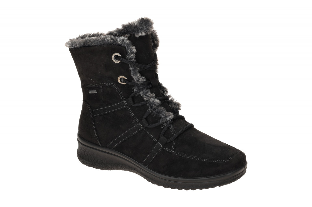 Hersteller: ara Hersteller Art-Nr.: 12-48554 65 Modellname: M?NCHEN-ST Machart: Damen Stiefeletten – Winterstiefelette Farbe: schwarz + grau (schwarz/graphit) Obermaterial: Textil (Hydroscala, GORE-TEX = wasserdicht) Innenfutter: Warmfutter – Textil, Kragen = Kunstfell, Schaft = Wolle Innensohle: Textil Fu?bett Wechselfu?bett: Ja – herausnehmbare Innensohle Laufsohle: PU (Polyurethan) – extra leicht, Keil ca. 2cm Verschluss: Schn?rung und Rei?verschluss Absatzart: flach – kein Absatz Absatzh?he: flach Schafth?he: Kn?chelhoch, ca. 15cm Schuhform: rund Gr??enhinweis: f?llt normal aus Weitenangabe: H – Extra Weit Herstellerinformationen ara shoes GmbH | Zur Schlenkhecke 4, 40764 Langenfeld Kontakt: info@ara-shoes.de interne Artikelnummer f?r Ihre R?ckfragen: 252-00-0164