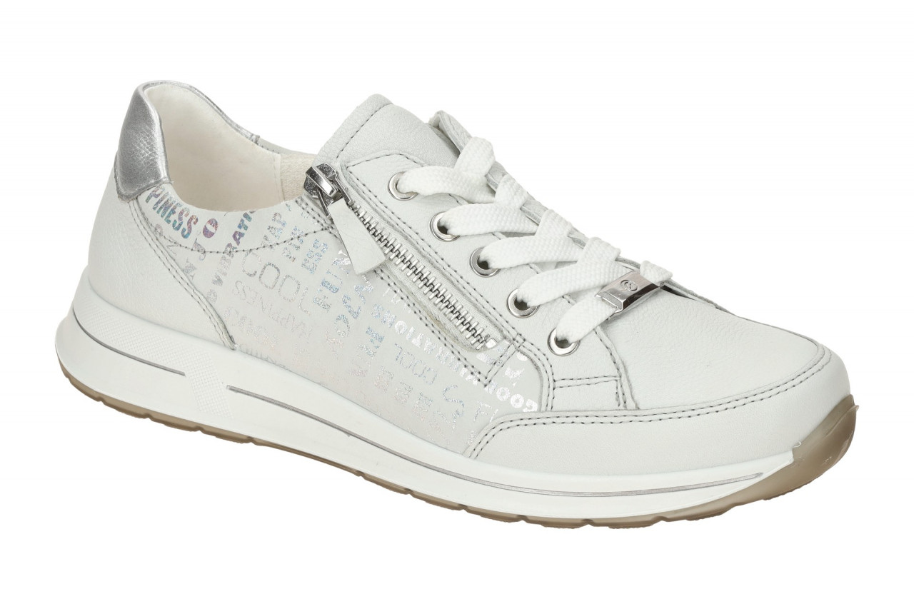 Hersteller: ara Hersteller Art-Nr.: 12-24801 78 Modellname: OSAKA 2.0 Machart: Damenschuhe – bequeme Schn?r- Halbschuhe Farbe: wei? (offwhite) + silber + Schrift irisierend (nebbia / silber) Obermaterial: Echtleder – Glattleder (Cervocalf, Joycalf, Gaucho) Innenfutter: Textil – weich gepolstert, auf Bambusbasis Innensohle: Textil Komfort Fu?bett, ara – High Soft Wechselfu?bett: Ja – herausnehmbare Innensohle Laufsohle: Gummisohle Verschluss: Schn?rung und Rei?verschluss Absatzart: flach – kein Absatz, Keil 1,2cm Schuhform: rund Gr??enhinweis: f?llt normal aus Weitenangabe: H – Extra Weit Herstellerinformationen ara shoes GmbH | Zur Schlenkhecke 4, 40764 Langenfeld Kontakt: info@ara-shoes.de interne Artikelnummer f?r Ihre R?ckfragen: 238-10-0086