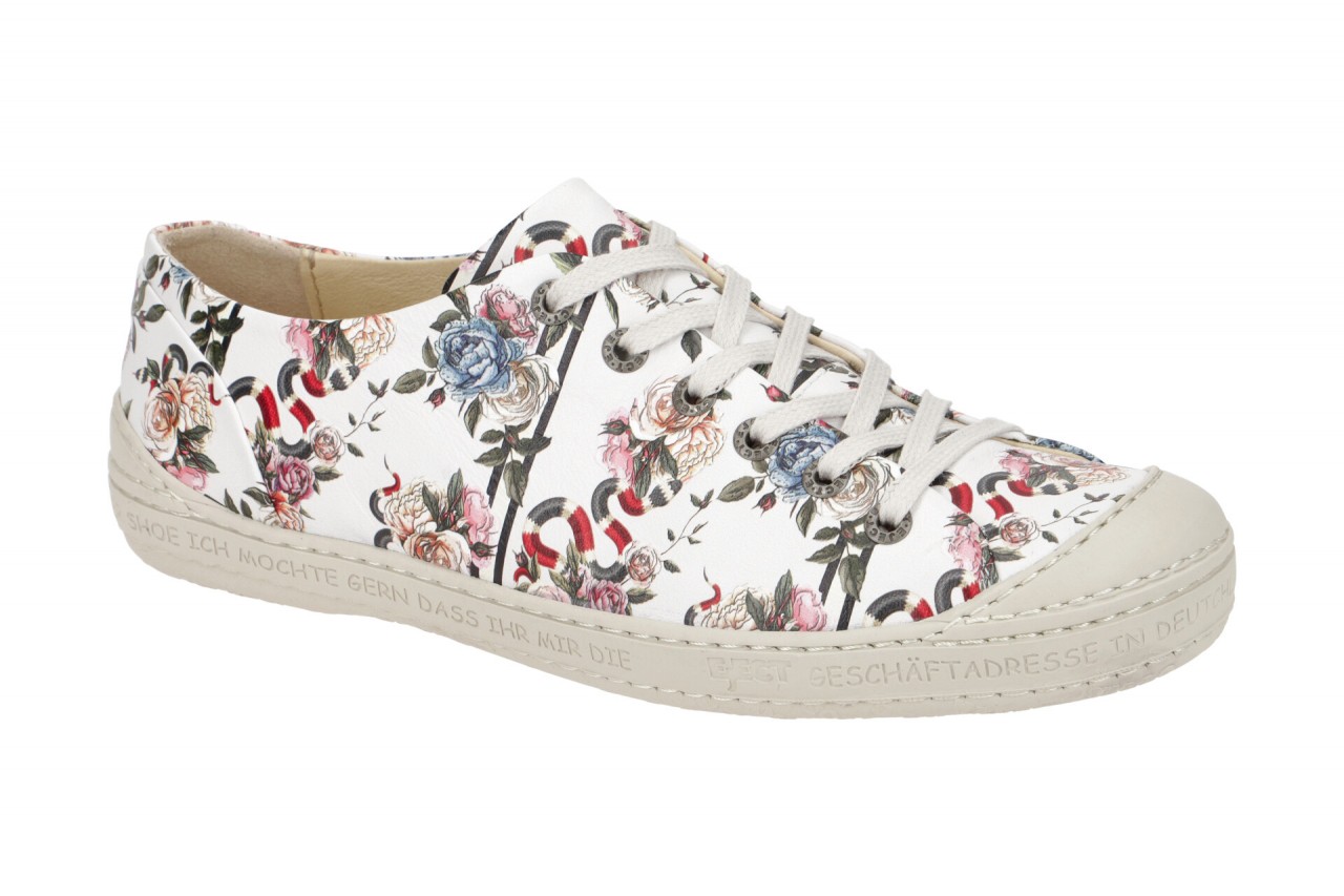 Hersteller: Eject Hersteller Art-Nr.: 11207.011 Modellname: DASS Machart: Damenschuhe – sportliche Schn?r- Halbschuhe Farbe: wei? + bunte Blumen + Sohle in grau (multi) Obermaterial: Echtleder – Glattleder Innenfutter: Echtleder – naturgegerbt Innensohle: Echtleder – naturgegerbt Wechselfu?bett: Ja – herausnehmbare Innensohle Laufsohle: Gummisohle Verschluss: 6fach Schn?rung Absatzart: flach – kein Absatz Schuhform: rund Gr??enhinweis: f?llt normal aus Weitenangabe: G – normal Weite Herstellerinformationen Innovative Schuhe Vertrieb UG | Industriestra?e 17a, 31832 Springe Kontakt: info@innovativeschuhevertrieb.de | 0049 511 740 39 253 interne Artikelnummer f?r Ihre R?ckfragen: 236-10-0204