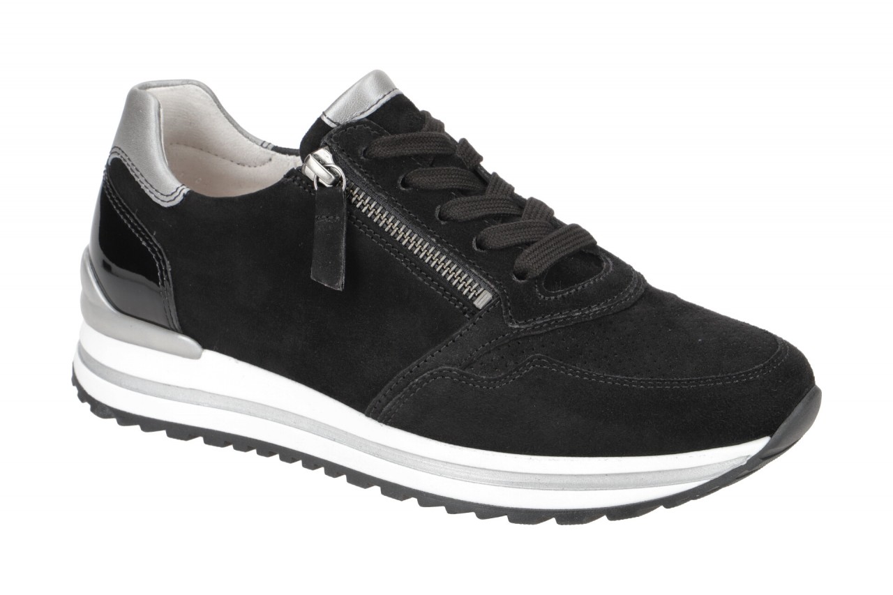Hersteller: Gabor Hersteller Art-Nr.: 06.528.87 Modellname: 06.528 – Gabor comfort Machart: Damenschuhe – Halbschuhe – Sneaker Farbe: schwarz + grau + wei? + Sohle in schwarz (schwarz / grey) Obermaterial: Echtleder – Velour – Rauhleder (perforiert – Samt / Perlato / Lack) Innenfutter: Textil und Echtleder Innensohle: Echtleder Komfort Fu?bett Wechselfu?bett: Ja mit 2 Innensohlen – variable Pa?form Laufsohle: Gummisohle, Plateau ca. 2cm Verschluss: Schn?rung und Rei?verschluss Absatzart: flach – kein Absatz Schuhform: rund Gr??enhinweis: f?llt normal aus Weitenangabe: H – Extra Weit Herstellerinformationen Gabor Shoes GmbH | Joachim-Gabor-Platz 1, 83024 Rosenheim Kontakt: info@gabor.de | 0049 8031 801-0 interne Artikelnummer f?r Ihre R?ckfragen: 236-00-0321