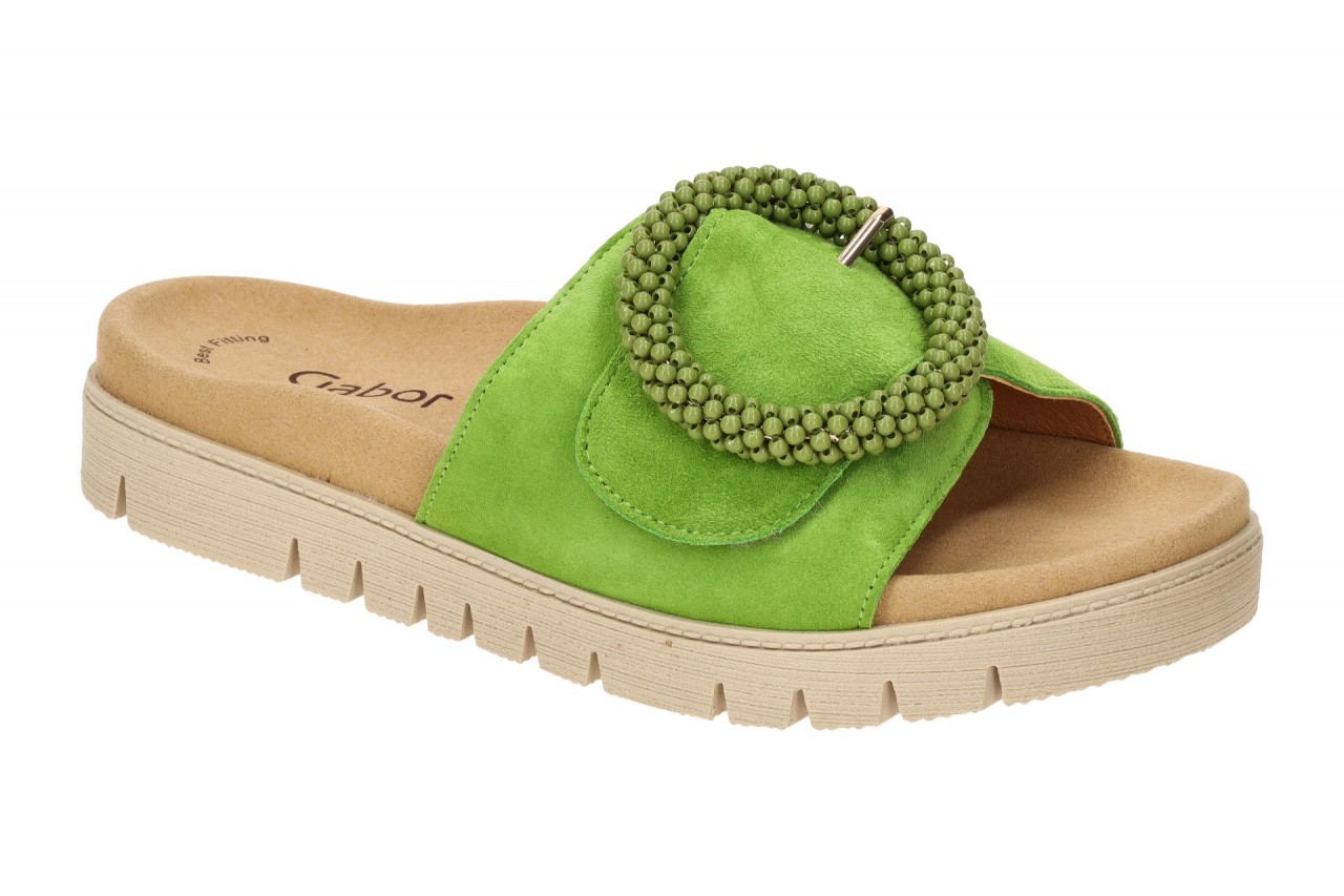 Hersteller: Gabor Hersteller Art-Nr.: 63.745.19 Modellname: 63.745 – Gabor BEST FITTING Machart: Damen Pantoletten – Pantolette Farbe: hellgr?n + braun (granny green) Obermaterial: Echtleder – Velour – Rauhleder (Samtchevreau) Innenfutter: Echtleder Innensohle: Textil Komfort Fu?bett Wechselfu?bett: nicht herausnehmbare Innensohle Laufsohle: Gummisohle, Plateau ca. 2,5cm Verschluss: Klettverschluss Absatzart: flach – kein Absatz, Keil ca. 1cm Schuhform: rund Gr??enhinweis: f?llt normal aus Weitenangabe: F – normal Weite Herstellerinformationen Gabor Shoes GmbH | Joachim-Gabor-Platz 1, 83024 Rosenheim Kontakt: info@gabor.de | 0049 8031 801-0 interne Artikelnummer f?r Ihre R?ckfragen: 271-76-0003