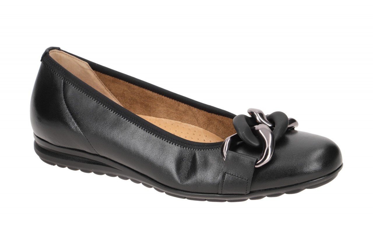 Hersteller: Gabor Hersteller Art-Nr.: 72.625.27 Modellname: 72.625 – GABOR COMFORT Machart: Ballerinas – Damen Halbschuhe – Slipper Farbe: schwarz + Deko Kette in altsilber + schwarz matt (schwarz (uni+altsilber)) Obermaterial: Echtleder – Glattleder (Lammnappa) Innenfutter: Echtleder und Mesh/Textil Innensohle: Echtleder – Fu?bett, Easy Walking Wechselfu?bett: nicht herausnehmbare Innensohle Laufsohle: Gummisohle, Gabor air cube Absatzart: Keilabsatz / Wedge, ca. 1,5cm Keil Absatzh?he: flach Schuhform: rund Gr??enhinweis: f?llt normal aus Weitenangabe: G – normal Weite Herstellerinformationen Gabor Shoes GmbH | Joachim-Gabor-Platz 1, 83024 Rosenheim Kontakt: info@gabor.de | 0049 8031 801-0 interne Artikelnummer f?r Ihre R?ckfragen: 221-00-0121