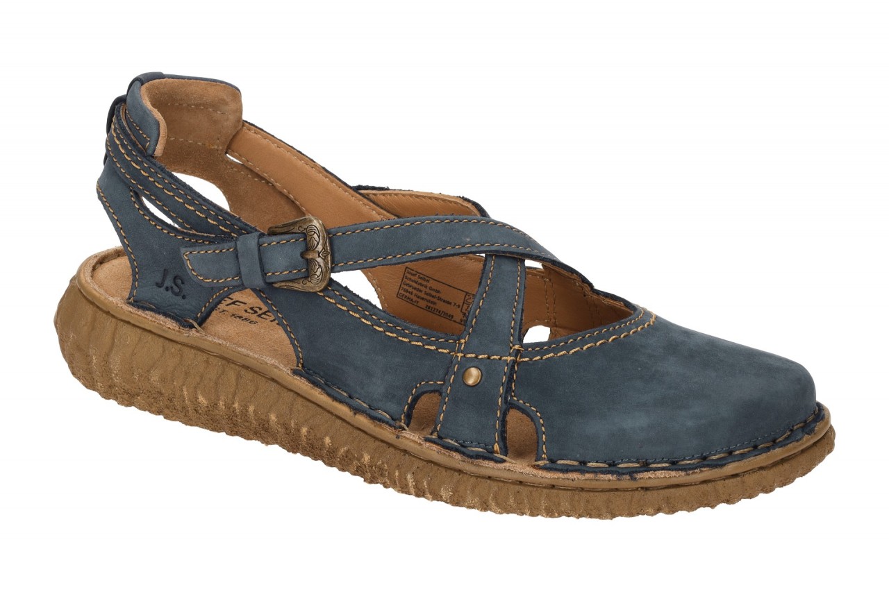 Hersteller: Josef Seibel Hersteller Art-Nr.: 95210 616 530 Modellname: RONJA 10 Machart: Damen Sandale – Sandaletten, Kreuz-Riemen Sandale Farbe: blau + N?hte in hellbraun + Sohle in braun (ocean) Obermaterial: Echtleder – Nubuck (Tumbled Nubuk – Rindsleder) Innenfutter: Echtleder – d?nnes Leder Kaltfutter, Fersenriemen gepolstert Innensohle: Echtleder – Fu?bett Wechselfu?bett: nicht herausnehmbare Innensohle Laufsohle: PU-Laufsohle, grob strukturiert Verschluss: Schnalle Absatzart: Keilabsatz / Wedge, Keil ca. 2 cm Absatzh?he: flach Schuhform: rund Gr??enhinweis: f?llt normal aus Weitenangabe: G – normal Weite Herstellerinformationen JOSEF SEIBEL Schuhfabrik GmbH | Gebr?der-Seibel-Str. 7-9, 76846 Hauenstein Kontakt: shop@josef-seibel.de | 0049 6392-9221-300 interne Artikelnummer f?r Ihre R?ckfragen: 289-80-0029