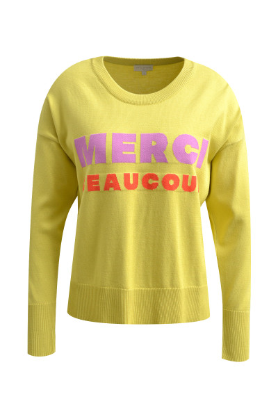 Farben die Laune machen! Der leichte Feinstrickpullover von MILANO ITALY ist, mit seinem modernen Letterprint, ein absoluter Blickfang. Kombinieren…
