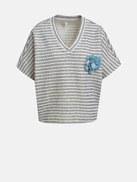 – leichtes Kurzarmsweatshirt von MILANO ITALY – Modellnummer “61-5599-8618” – angenehmes Mischgewebe – klassischer V-Ausschnitt – Blumenapplikation…