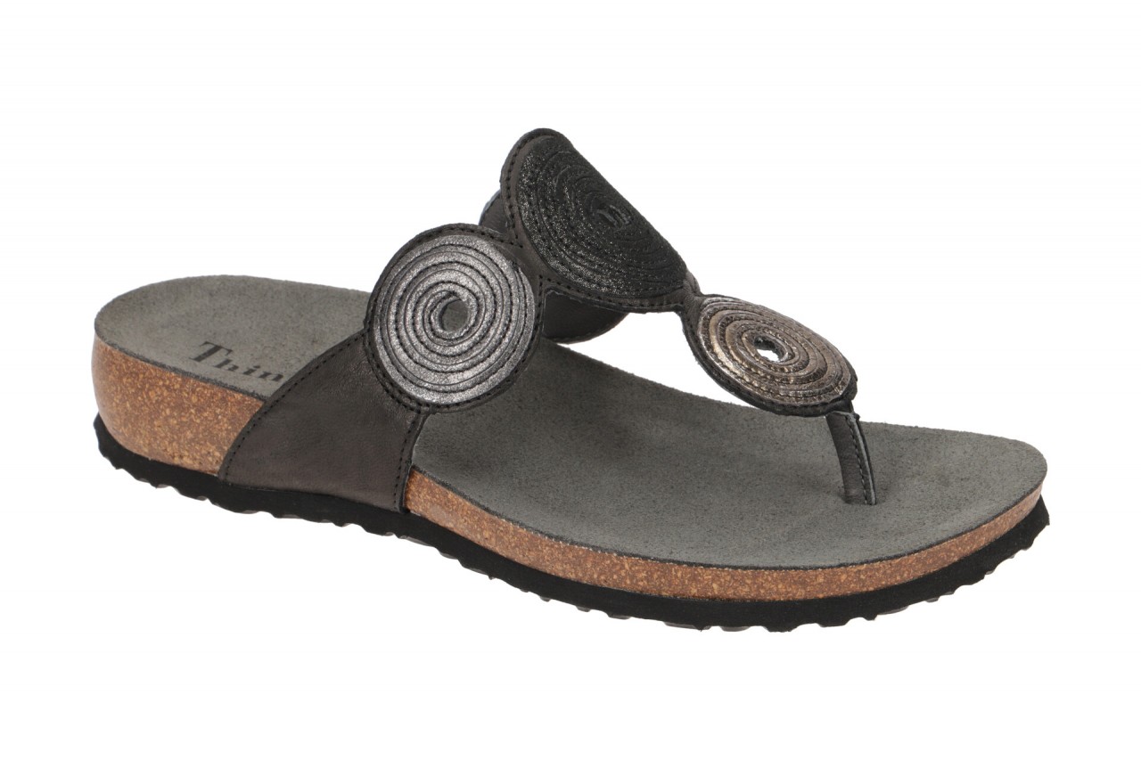 Hersteller: Think Hersteller Art-Nr.: 3-000372-0000 Modellname: JULIA Machart: Damen Pantoletten – Zehentrenner Pantolette Farbe: schwarz + grau + metallic (schwarz/kombi) Obermaterial: Echtleder – Glattleder (Capra Rustico Veg. / Metallic) Innenfutter: Echtleder – naturgegerbt Innensohle: Echtleder Komfort Fu?bett Wechselfu?bett: nicht herausnehmbare Innensohle Laufsohle: EVA (Ethylenvinylacetat) – leicht und widerstandsf?hig Absatzart: Keilabsatz / Wedge, ca. 2cm Keil mit Herz-Fersend?mpfung Schuhform: rund Gr??enhinweis: f?llt normal aus Weitenangabe: G – normal Weite Herstellerinformationen LEGERO Schuhfabrik Gesellschaft m.b.H. | Legero-United-Stra?e 4, 8073 Feldkirchen bei Graz Kontakt: office@legero-united.com interne Artikelnummer f?r Ihre R?ckfragen: 270-00-0022