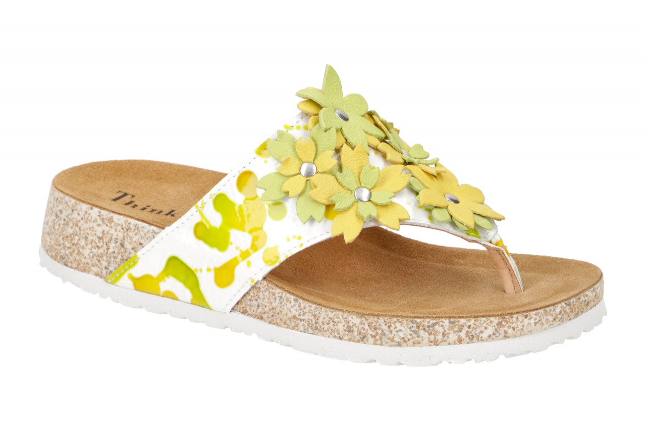 Hersteller: Think Hersteller Art-Nr.: 3-000745-9000 Modellname: KOAK Machart: Damen Pantoletten – Zehentrenner Pantolette Farbe: wei? + Muster und Lederbl?ten in gelb + gr?n (limone/kombi) Obermaterial: Echtleder – Lack Leder (Effekt Pollock, Soft Agnello) Innenfutter: Echtleder – naturgegerbt, chromfrei gegerbt Innensohle: Echtleder Komfort Fu?bett Wechselfu?bett: nicht herausnehmbare Innensohle Laufsohle: EVA (Ethylenvinylacetat) – leicht und widerstandsf?hig Absatzart: Keilabsatz / Wedge, Keil ca. 2cm Schuhform: rund Gr??enhinweis: f?llt normal aus Weitenangabe: G – normal Weite Herstellerinformationen LEGERO Schuhfabrik Gesellschaft m.b.H. | Legero-United-Stra?e 4, 8073 Feldkirchen bei Graz Kontakt: office@legero-united.com interne Artikelnummer f?r Ihre R?ckfragen: 270-10-0027